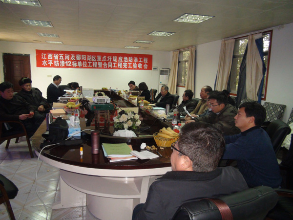2012年1月10日,江西省五河及鄱陽湖區(qū)重點圩堤應急防滲工程建設項目部在江西省共青城市主持召開了水平防滲12標單位工程暨合同工程完工驗收會,并順利通過了單位工程暨合同工程完工驗收。驗收會由省河湖局許盛豐主持。公司吳鐵凡總工程師、工程部郭洪有經(jīng)理參加了驗收會。