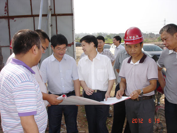 2012年6月19日,江西省水利廳廖瑞釗副廳長蒞臨我公司承建的上饒市三江導(dǎo)排渠延伸段工程視察指導(dǎo)工作。
