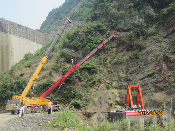 我司施工人員進(jìn)行導(dǎo)流隧洞封堵閘門下閘作業(yè)