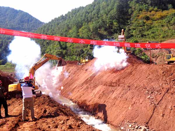 青龍水庫是一座供農(nóng)業(yè)灌溉、灌區(qū)農(nóng)村人畜飲用水、縣城供水為主的蓄水工程。水庫位于普洱市景東縣錦屏鎮(zhèn)、文龍鄉(xiāng)境內(nèi)的龍樹河上,水庫樞紐由攔河壩、輸水隧洞、溢洪道組成。我公司于今年6月中標(biāo)承建了大壩及溢洪道施工標(biāo),中標(biāo)價1.1億元。青龍水庫大壩圍堰的成功截流,標(biāo)志著該項(xiàng)目進(jìn)入全面施工階段。