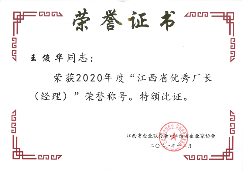 集團(tuán)資訊近日,江西省企業(yè)聯(lián)合會(huì)、江西省企業(yè)家協(xié)文件《關(guān)于表彰“2020年度新時(shí)代江西杰出企業(yè)家、江西省優(yōu)秀企業(yè)、江西省優(yōu)秀企業(yè)家、江西省優(yōu)秀廠長(zhǎng)(經(jīng)理)”的決定》公布了2020年度江西省優(yōu)秀企業(yè)等獎(jiǎng)項(xiàng)的評(píng)選結(jié)果。集團(tuán)獲評(píng)江西省優(yōu)秀企業(yè);集團(tuán)董事長(zhǎng)王元旦獲評(píng)新時(shí)代江西杰出企業(yè)家;集團(tuán)常務(wù)副總裁王俊華獲評(píng)江西省優(yōu)秀廠長(zhǎng)(經(jīng)理)。至此,集團(tuán)已連續(xù)二十二年被評(píng)為“江西省優(yōu)秀企業(yè)”。榮譽(yù)是一種肯定,更是一種責(zé)任,集團(tuán)將以此為動(dòng)力,新的一年再接再厲,繼續(xù)以?xún)?yōu)秀水利龍頭企業(yè)的標(biāo)準(zhǔn)嚴(yán)格要求自己,不斷超越自我,開(kāi)創(chuàng)企業(yè)發(fā)展多元化新格局,持續(xù)提高市場(chǎng)競(jìng)爭(zhēng)力和社會(huì)影響力。