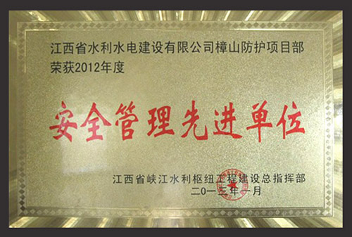集團(tuán)資訊 2013年2月,江西省峽江水利樞紐工程建設(shè)總指揮部授予我公司樟山防護(hù)工程項目部“2012年度安全管理先進(jìn)單位”榮譽(yù)稱號,項目管理人員彭紅軍、鄧敏被評為峽江水利樞紐“安全生產(chǎn)先進(jìn)個人”。