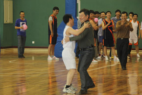 座談會結(jié)束后,大家乘車前往恒大體育館,活動的第一項內(nèi)容是公司領(lǐng)導(dǎo)和青年員工共同完成的團隊拓展游戲——“齊腳并進”和“心心相印”兩項接力比賽。比賽過程中,公司領(lǐng)導(dǎo)和青年員工們熱情高漲,目標(biāo)明確,心往一處想,勁往一處使,充分發(fā)揮團隊協(xié)作精神,爭分奪秒完成各項任務(wù),布滿汗水的笑臉在燈光下熠熠生輝,加油鼓勁和歡呼祝賀聲響成一片。拓展游戲項目結(jié)束,大家還進行了籃球友誼賽和羽毛球比賽。