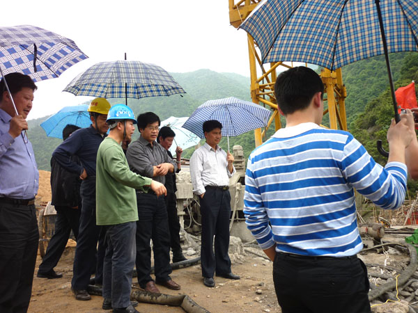 廖瑞釗副廳長在項目施工現(xiàn)場檢查施工生產情況,聽取了項目管理人員關于施工進度及質量安全等工作匯報。當他聽到泰和縣洞口水庫除險加固工程目前進展比較順利,主體工程已完成70%左右,計劃于2013年8月底項目全面完工時,廖瑞釗副廳長對工程的進展表示滿意,他要求參建各方再接再勵完成好下一步工作,全力配合,確保工程質量和安全。