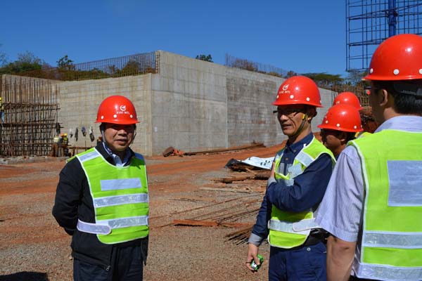 2014年10月上旬,公司總工程師胡鴻煌前往肯尼亞海外項目開展安全檢查工作。我公司總工程師胡鴻煌公司駐肯尼亞辦事處主任賀翔、項目主要管理人員的陪同下,對雙河項目的質(zhì)量安全工作開展全面的檢查。
