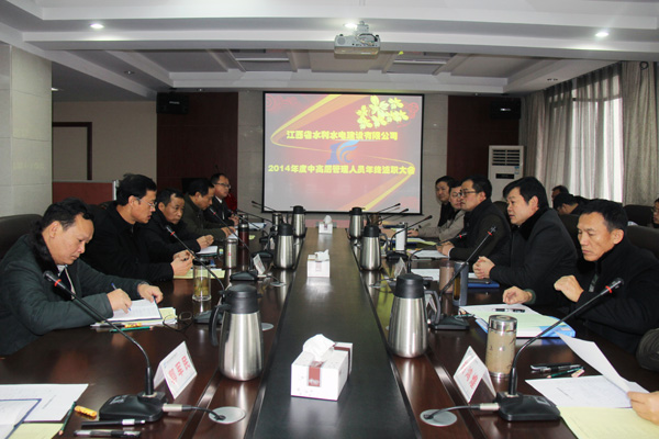 2015年1月31日,江西省水利水電建設(shè)有限公司2014年度年終述職大會在公司總部順利舉行。公司董事長、黨委書記王元旦,總經(jīng)理徐洪良,國內(nèi)、國外工作的中高層管理人員、項(xiàng)目經(jīng)理代表,員工代表共50多人參加了述職大會。總經(jīng)理徐洪良主持會議。