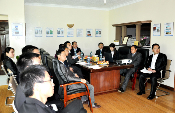 當(dāng)?shù)貢r間2015年7月16日,中國駐肯尼亞經(jīng)濟商務(wù)處參贊郭策一行到我司肯尼亞分公司調(diào)研??夏醽喎止究偨?jīng)理賀翔、副總經(jīng)理彭紅軍及相關(guān)人員迎接并陪同調(diào)研。