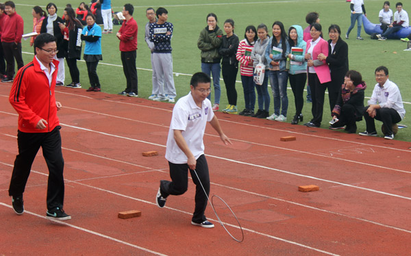 本屆趣味運動會共設(shè)排山倒海、夾球接力、趕“豬”跑接力賽、推滾鐵環(huán)迎面接力、傳水接力、袋鼠跳、跳繩接力賽、瘋狂毛毛蟲、齊心協(xié)力、連環(huán)馬等十個比賽項目。我公司選派的30名運動員參加了全部十個比賽項目,并取得了夾球接力第一名,推滾鐵環(huán)迎面接力、連環(huán)馬兩個項目第二名的好成績。