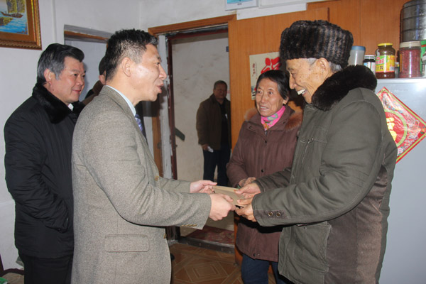 2016年1月26日,江西省水利廳廳長(zhǎng)羅小云一行,冒著嚴(yán)寒前往省水建公司職工生活基地,親切看望離退休老同志,公司董事長(zhǎng)王元旦陪同慰問(wèn)。
