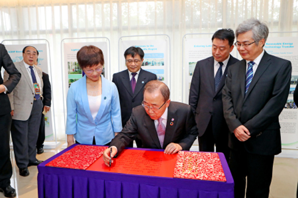 潘基文表示,國際小水電中心是中國與聯(lián)合國開展南南合作的典范,是習近平主席倡導和支持的南南合作的杰出代表。潘基文為國際小水電中心題詞:“Small hydropower is an important renewable energy. I hope the International Center on Small Hydro Power (ICSHP) continues to make great contributions to the development of small hydropower worldwide.”