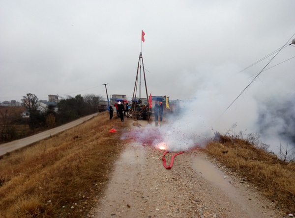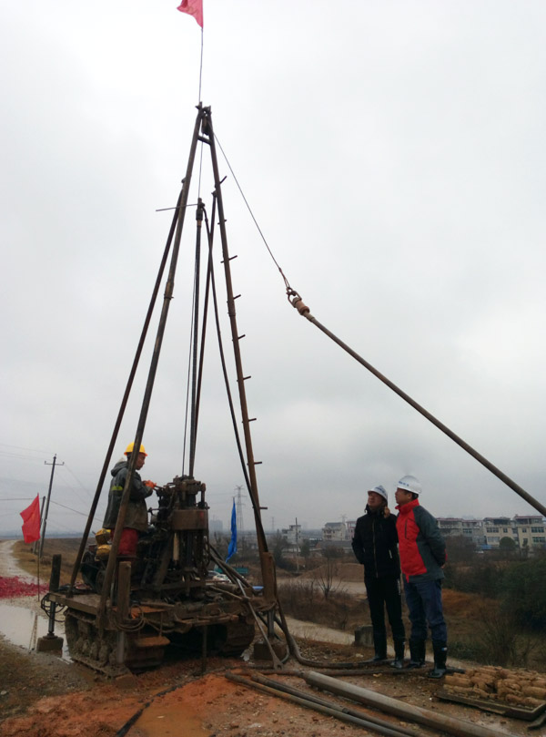 禾河大道路堤改造工程施工2標(biāo)成功打下開工第一鉆