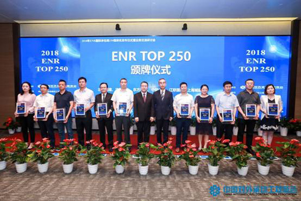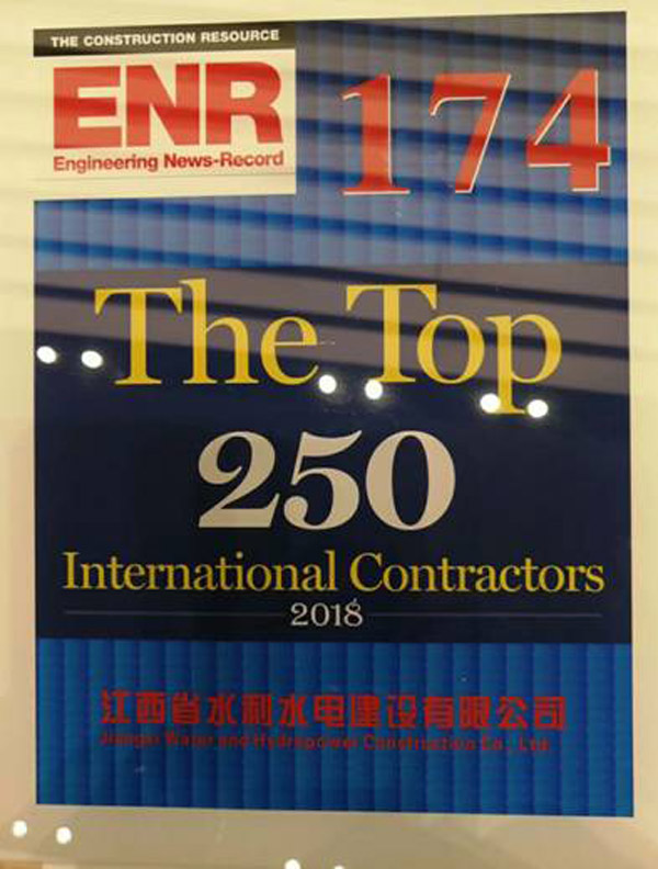 8月31日,“2018年ENR國際承包商250強(qiáng)排名發(fā)布儀式暨業(yè)務(wù)交流研討會”在中國對外承包商會舉行。69家本年度“ENR國際承包商會 250強(qiáng)”中國上榜企業(yè)代表等180人出席活動。我司國際排名174位,國內(nèi)共69家單位上榜,我司國內(nèi)排名51位,江西水建董事、海外公司總經(jīng)理黃鄭民代表企業(yè)出席會議并捧回獎牌。