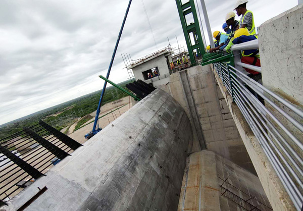 弧形閘門由3片門葉組成,重約70多噸。第一孔閘門的順利提升,鼓舞了項目全體人員的士氣,堅定了大家眾志成城高質(zhì)量完成項目的決心。