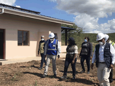 Cecilia女士先后參觀了移民房、副壩、溢洪道和水庫管理站新辦公大樓,并現(xiàn)場(chǎng)觀摩了弧形閘門的啟閉演示。她邊看邊問,詳細(xì)了解各分部工程的建設(shè)情況和項(xiàng)目總體進(jìn)度,認(rèn)真聽取日常施行的各項(xiàng)防疫措施;在得知項(xiàng)目即將竣工的消息后,對(duì)承包商的表現(xiàn)表示高度贊賞。她動(dòng)情地說道,盡管現(xiàn)在新冠肺炎肆虐全球,但是優(yōu)秀的中國(guó)承包商在做好各項(xiàng)防控措施的基礎(chǔ)上,仍然堅(jiān)守戰(zhàn)線、迎難而上,充分體現(xiàn)了履約精神和奉獻(xiàn)精神,值得尊敬!她表示,也許疫情將持續(xù)一段時(shí)間,但是只要承包商有困難,就要毫不猶豫地向政府表達(dá),公共工程部永遠(yuǎn)是承包商堅(jiān)強(qiáng)的后盾。她強(qiáng)調(diào),業(yè)主國(guó)家水務(wù)局和承包商要更加精誠團(tuán)結(jié),充分估計(jì)疫情可能造成的各類影響,謀劃在前、全盤統(tǒng)籌,以縝密的防控措施和有力的生產(chǎn)行動(dòng)站好最后一班崗,如期實(shí)現(xiàn)項(xiàng)目移交和運(yùn)營(yíng),為300萬首都人民帶去生命之水。