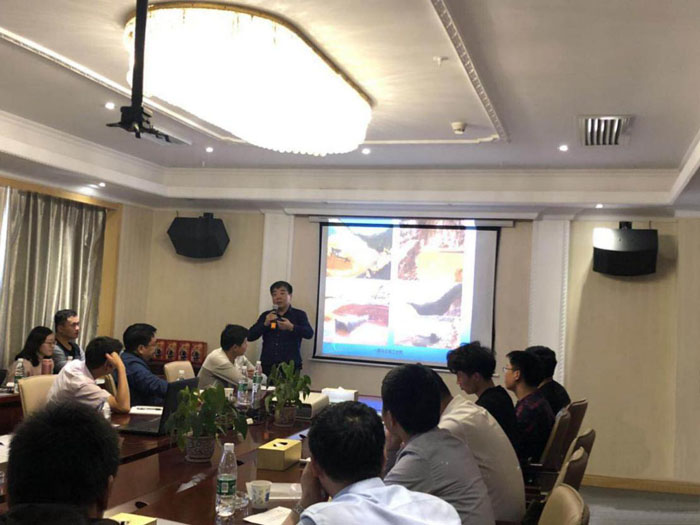 現(xiàn)場(chǎng)參觀結(jié)束后,學(xué)習(xí)團(tuán)參加了技術(shù)培訓(xùn)和經(jīng)驗(yàn)交流會(huì)??偨?jīng)理助理杜凌主持了開(kāi)班儀式??偣こ處熀櫥汀㈨?xiàng)目副經(jīng)理李成,對(duì)洋前壩水庫(kù)的大壩總布置、大壩施工導(dǎo)流、大壩及供水管道施工技術(shù)細(xì)節(jié)等,通過(guò)文字、圖片、視頻等組成的PPT課件為學(xué)員授課,并就學(xué)員提出的問(wèn)題逐一進(jìn)行了解答。